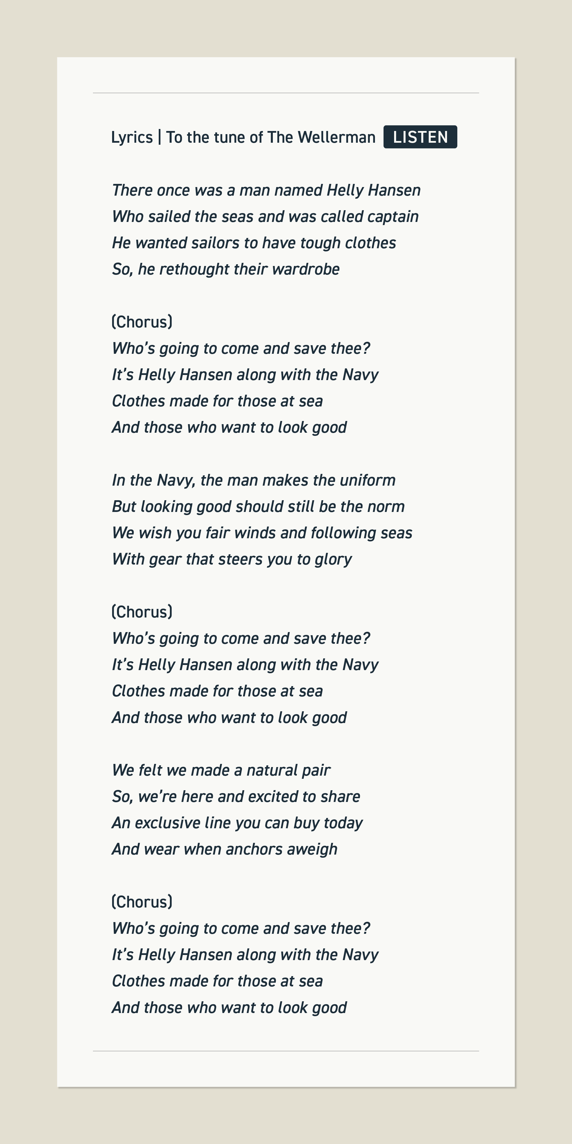Manifestos. Website copy. Headlines. Even a sea shanty.